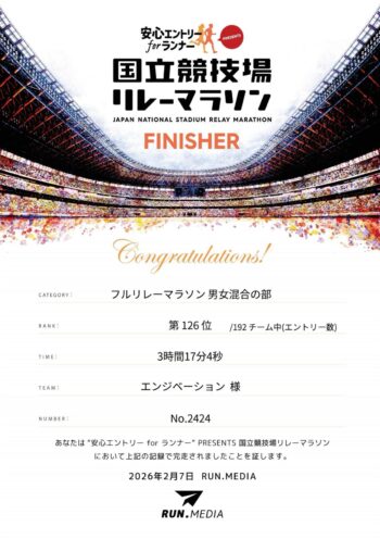 日頃から大変お世話になっています富士フィルムビジネスイノベーション様からお誘いを受け、先月「国立競技場リレーマラソン」という大会に5人で出場しました。