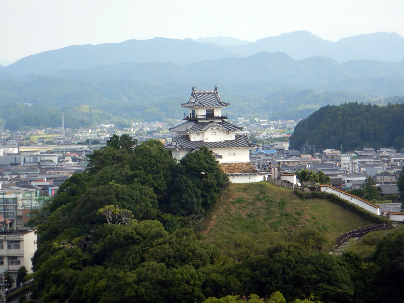 掛川城を様々な場所から見てみました。15階建ての屋上から見た場合は背景に城後方の平地も一緒に見え、天守閣の高さを感じることができます。少しずつ見る高さを下げてみると平地は見えなくなり、変わって空が見えてきます。軒裏が見える程度の高さ、7階くらいから安定感がでてくるようになります。仰ぎ見ることで遠近法により土台基礎が近くに見え、その広がりが安定感を生み、同時に天守閣は遠のくことで高さを感じるようになります。視覚的に安定感と高さのある構図が壮大な印象を与えるものと推察されます。いずれも正面から対峙するより、少し斜めから見る方がより広がりが強調され、壮大な印象を感じました。今回見た中では、三の丸広場あたりから見上げるポイントがよかったと思いました。結論的には城の高さを感じたいなら高所から、城のどんと構える存在感を感じたいなら地上から見上げる、仰ぎ見るのが一番城らしく見えるのではないかというのが実感です。