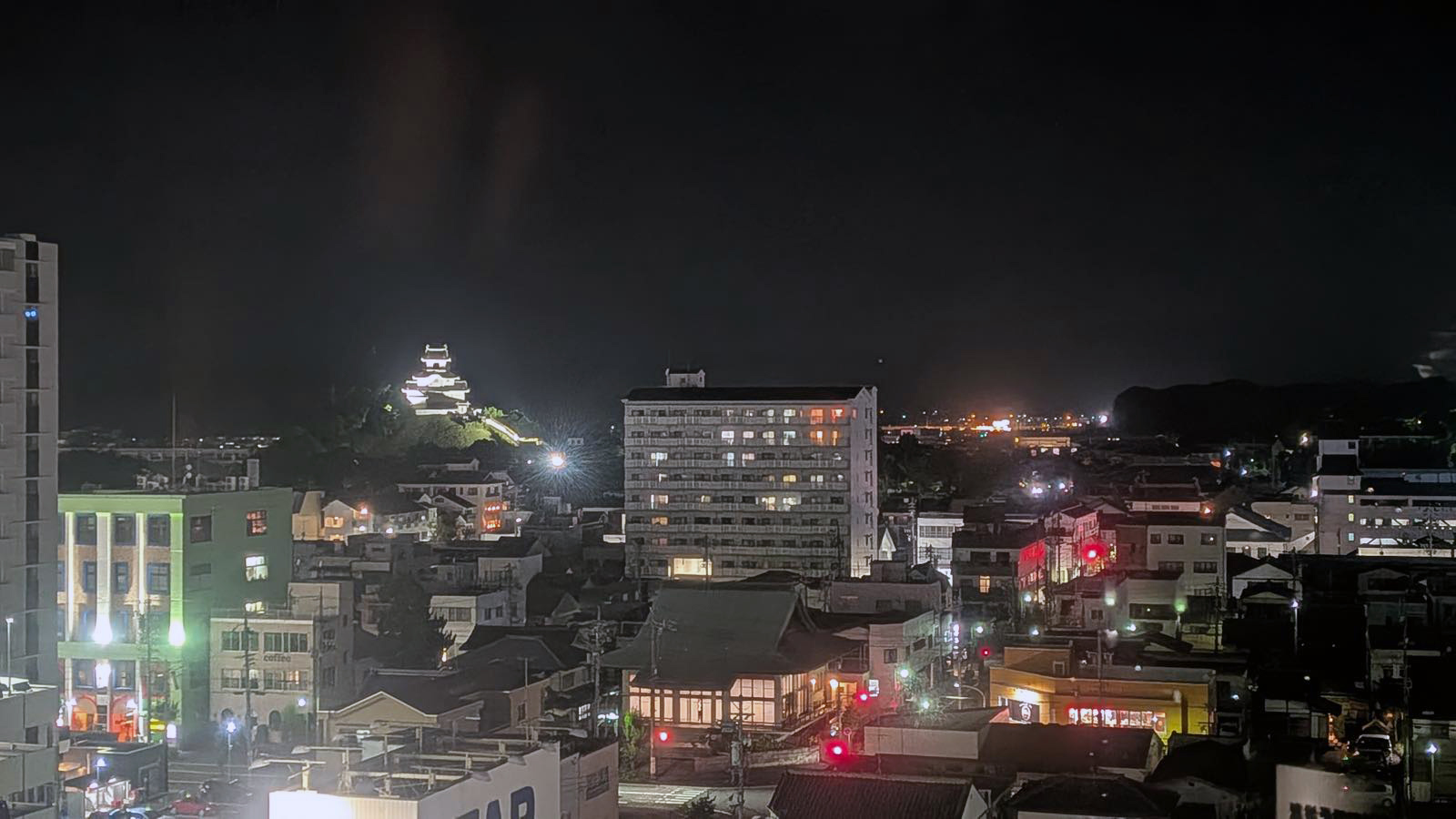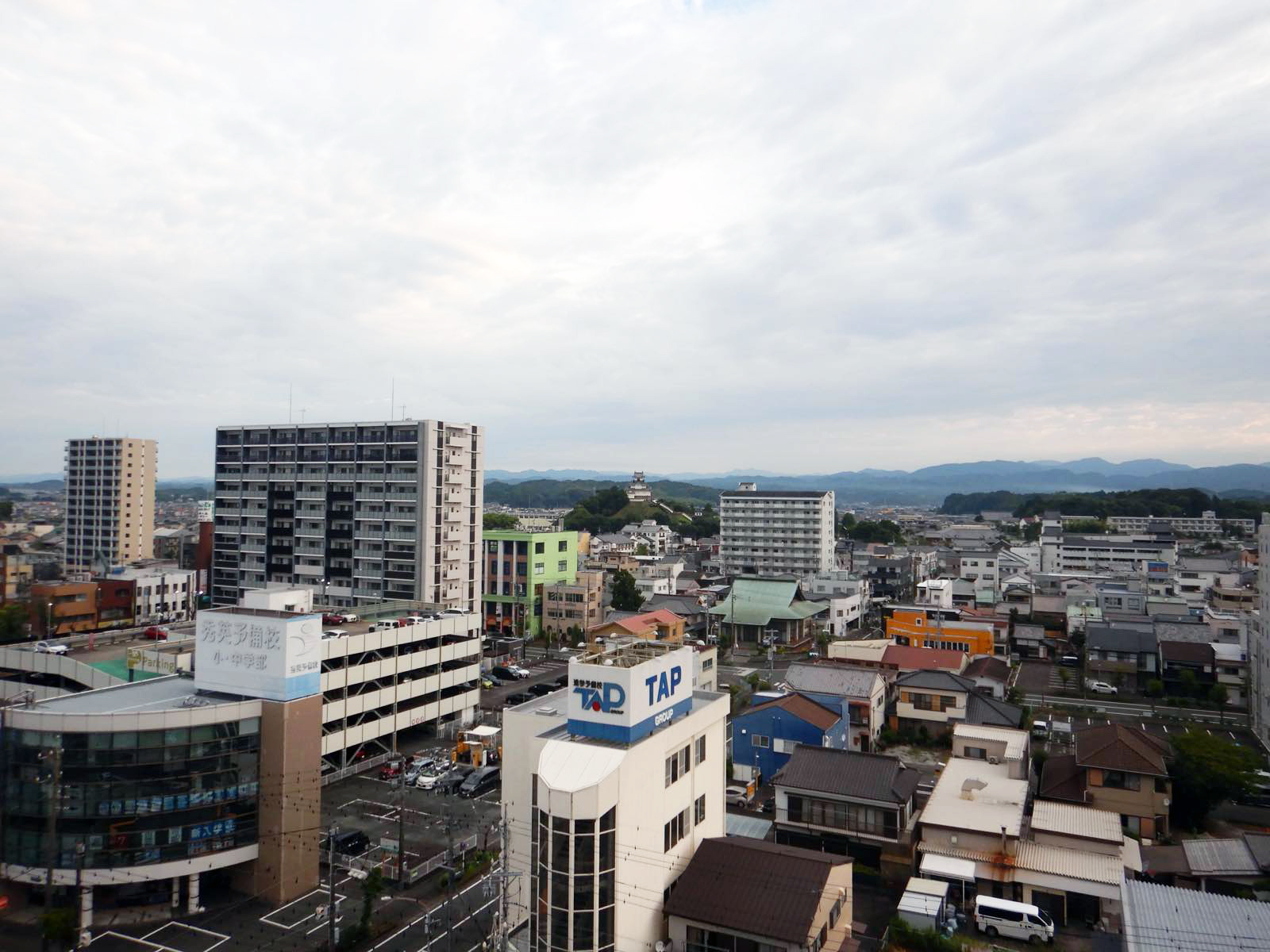 天守閣より弊社設計物件を臨む(真ん中2件) |