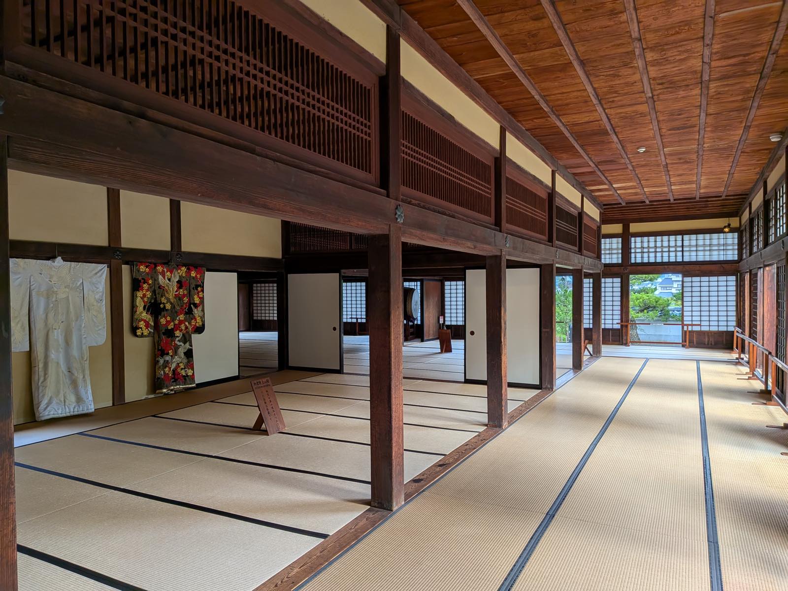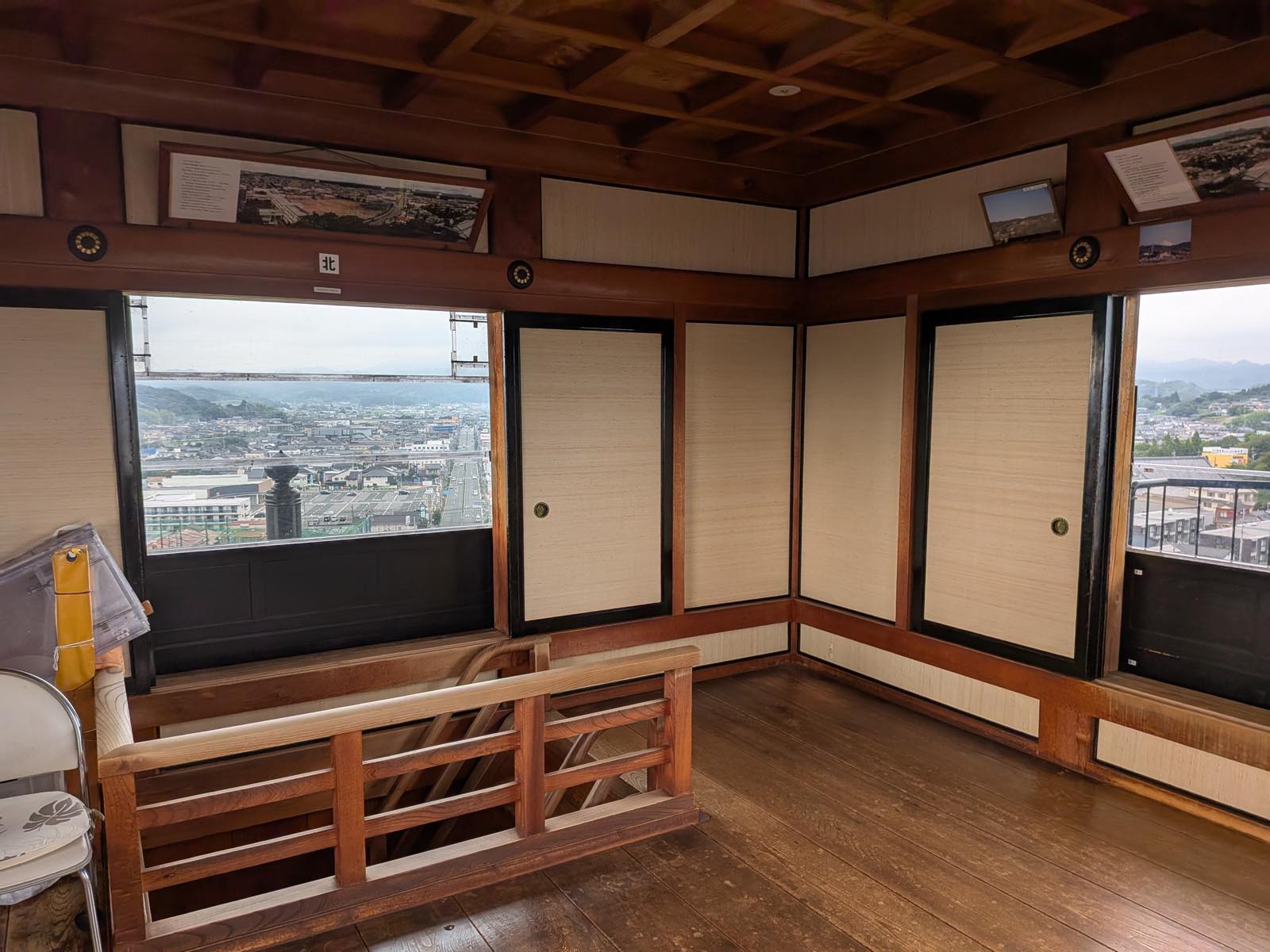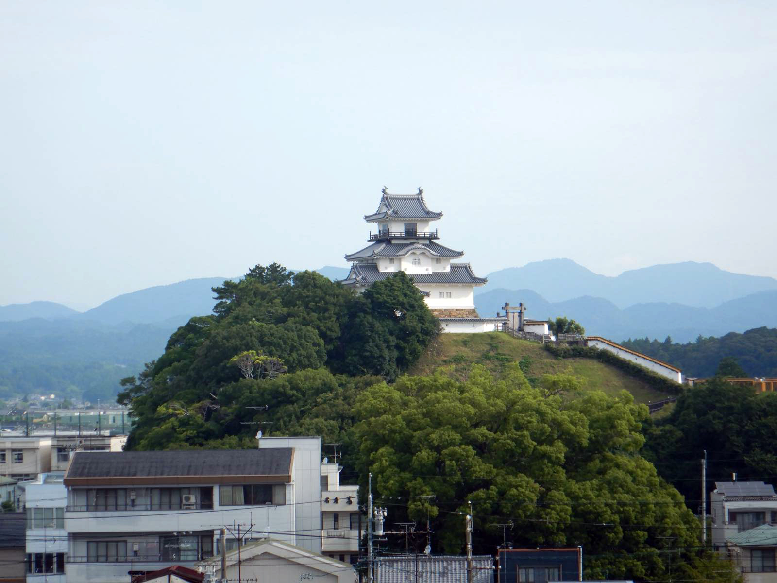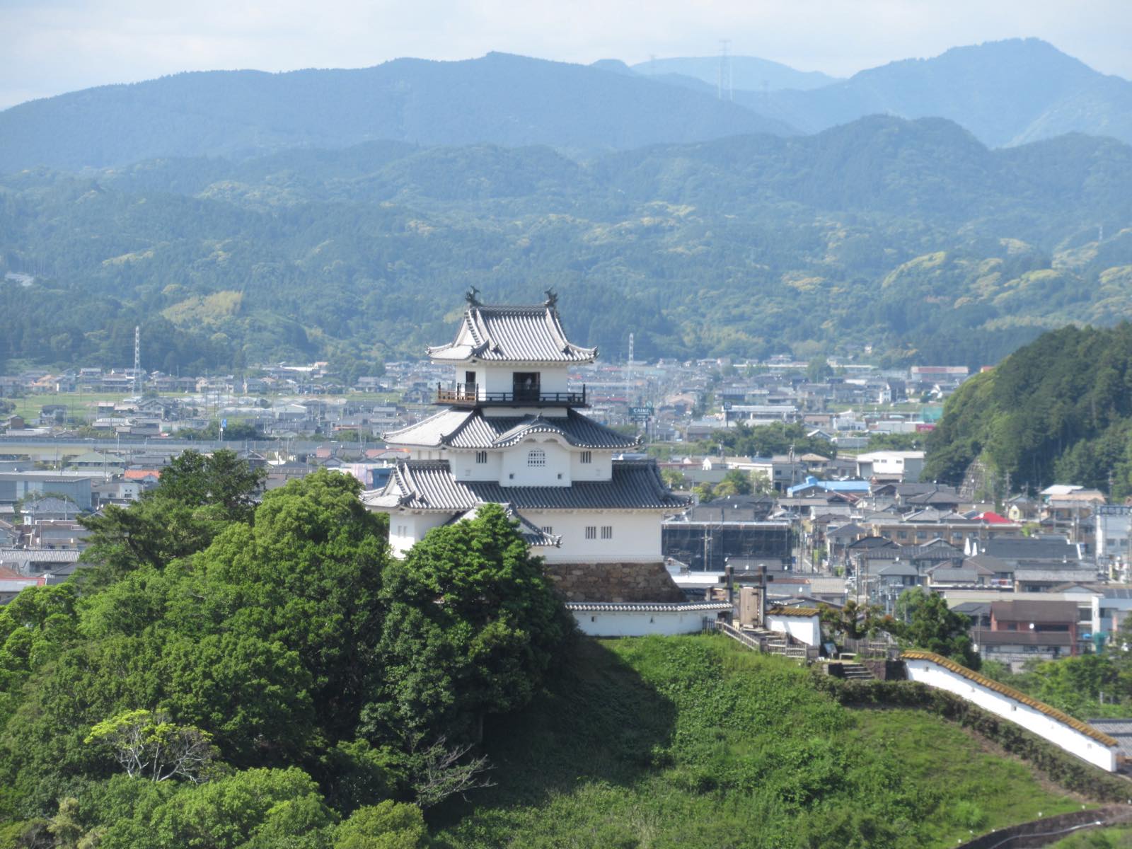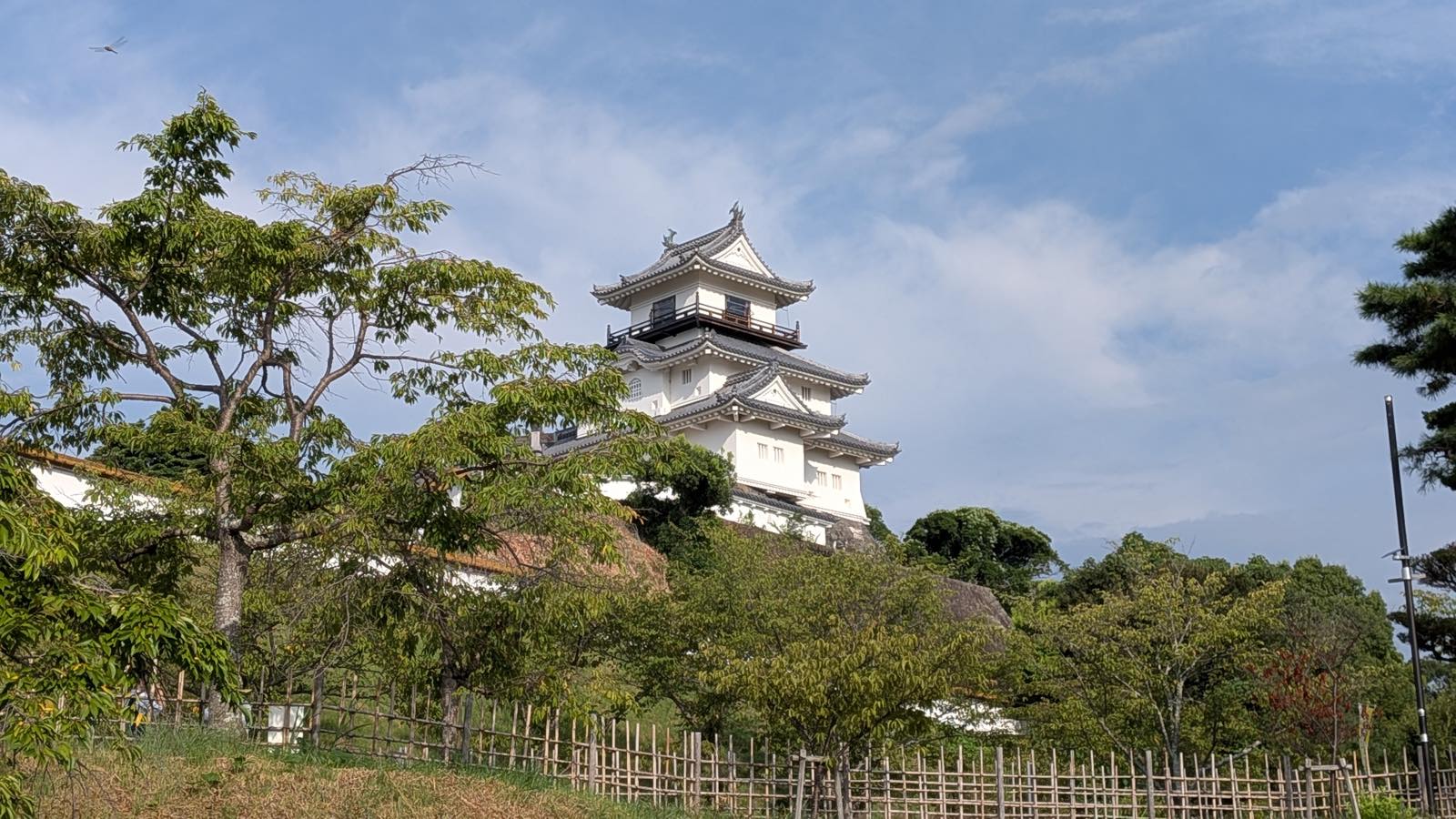 掛川城は駅より北へ向かった高台の街中を眼下におさめる位置にあり、まさに街のシンボルとして聳え立っています。新幹線ホームから眺めることができますが役所調査で訪れた頃は丁度改修工事中(令和4年6月から令和5年3月まで)だったためシートに覆われ、その雄姿を目にすることはありませんでした。着工のころには工事も完了しその真新しい白壁の外観を披露するようになっていました。