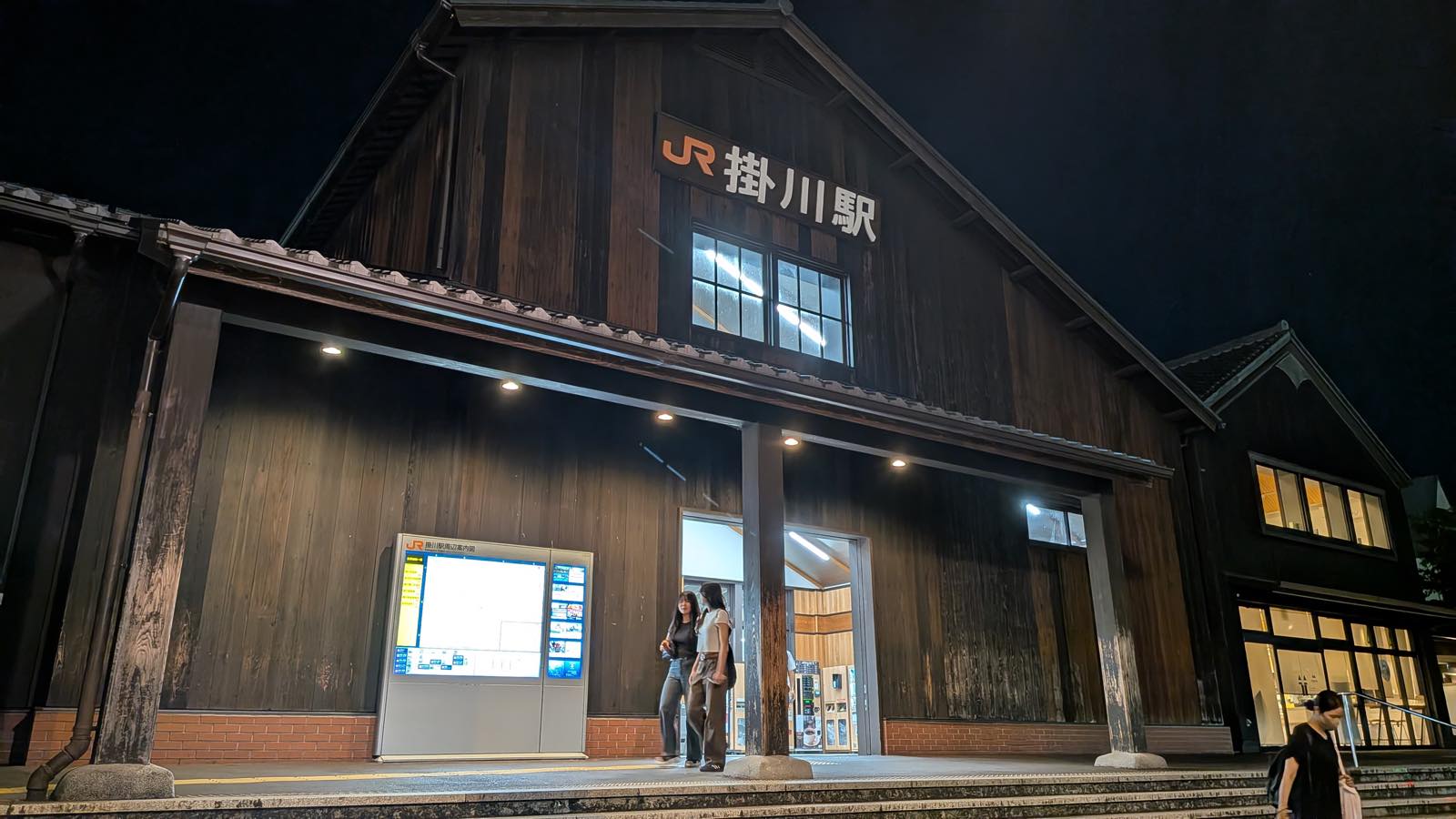 かつて掛川藩の城下町、宿場町として東海道における大きな拠点として成長を遂げています。NHK大河ドラマ「功名が辻」の舞台となった地でもあります。駅前は静かな街並みを形成していますが少し離れたところには大手メーカーの工場や工業団地を構え、南側は掛川花鳥園などの観光スポットが有名な都市です。請願駅として昭和63年新幹線駅が開業、発展に一役買っていることに間違いはありません。掛川城を構える駅北口側は歴史を感じさせる町並みが広がり、JR北口駅舎は木造風の建物となっています。新幹線駅開業や東名高速掛川I.C開通後に開発が進んだ南口駅舎の近代的な建物の装いとは異なる印象を与えます。