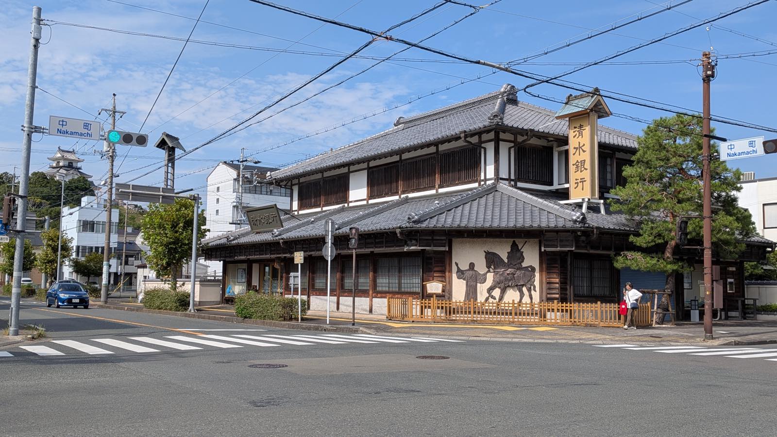 駅前から始まるメイン通りはほぼフラットですが近づくにつれ緩やかな勾配で城へアプローチ、景色も駅前の都市的な風景かから徐々に観光地へと装いを変えていきます。銀行や信用金庫の建物は城下町の街並みに調和した装いで、いずれも一見しただけでは用途が認識できませんでした。門前町として栄え、観光も盛んであると思われますが商店の中にはシャッターを下ろしたままの店舗も若干目に付き、少し寂しさを感じました。(水曜日に訪れることが多く定休日が多かったのかもしれません)