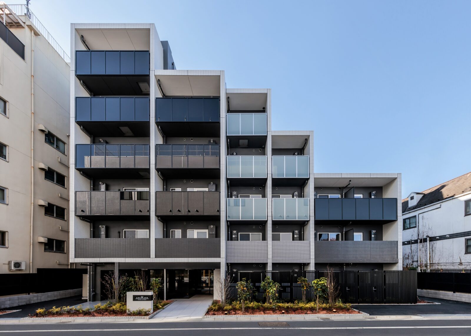 外観は、モノトーンを基調とした色彩で、セットバックを活かしたスタイリッシュなデザインとなっています。